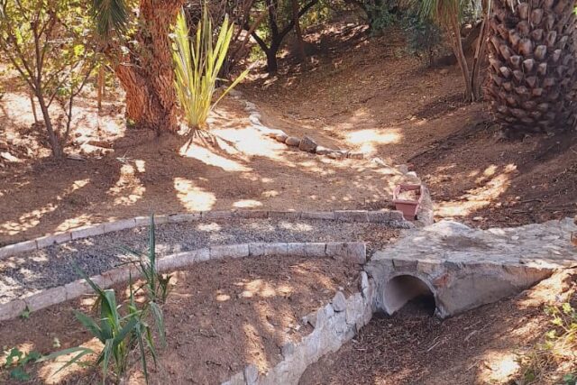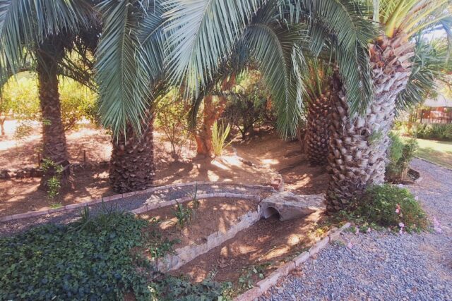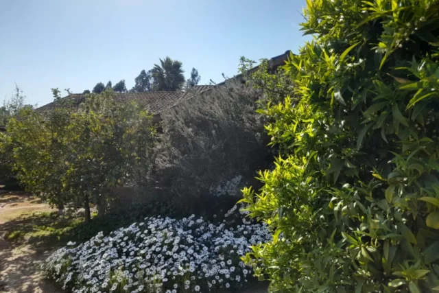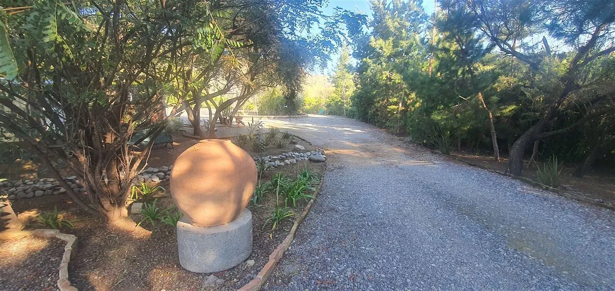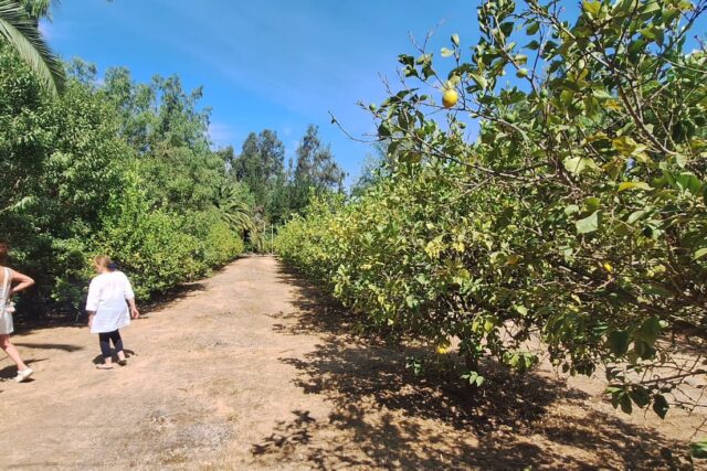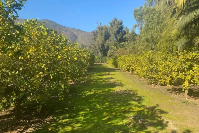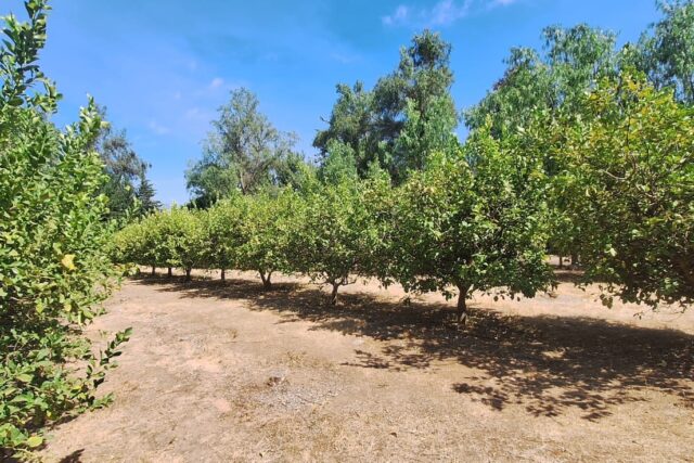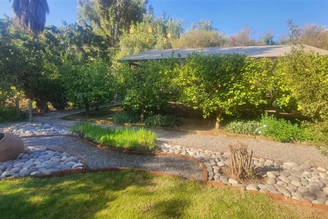 La parcela posee una superficie total de 5.056 m², con una cuidada variedad de árboles frutales (cítricos, almendros, ciruelos) y especies ornamentales, conformando un entorno verde y armonioso.