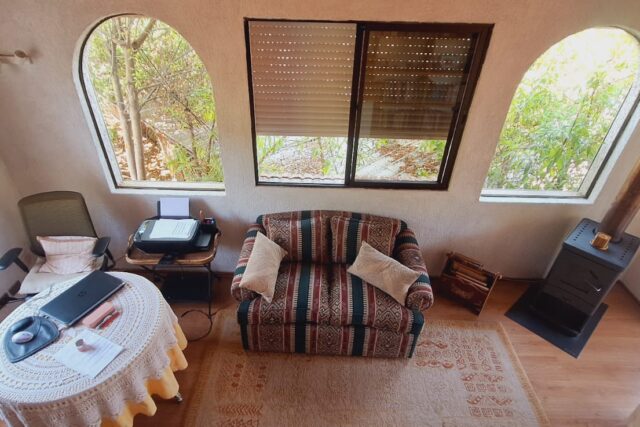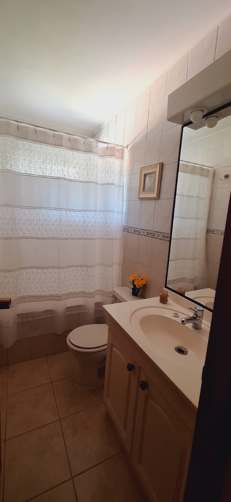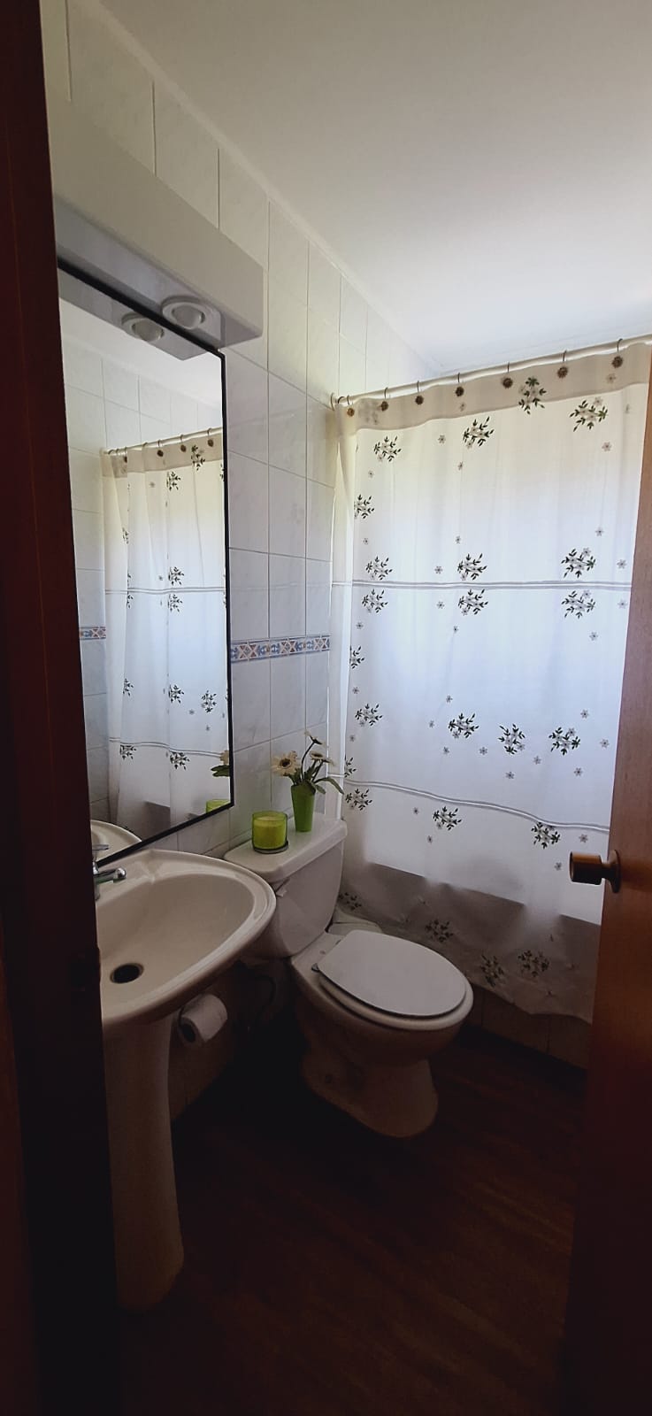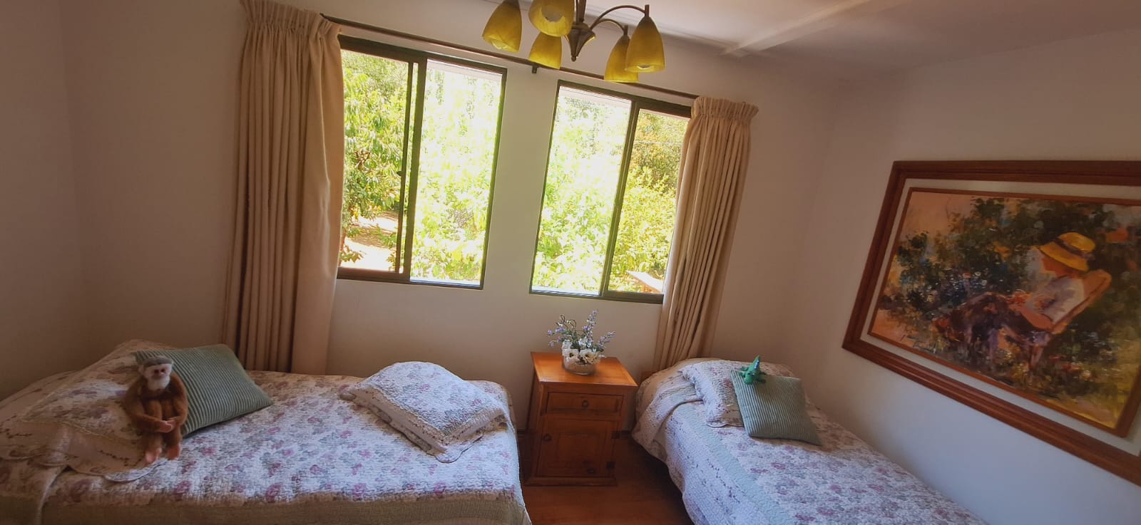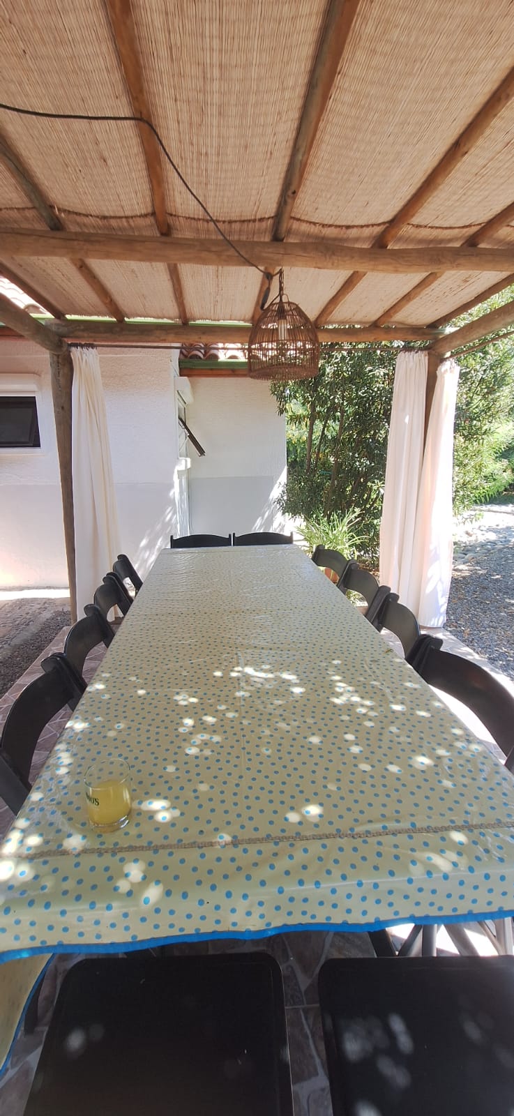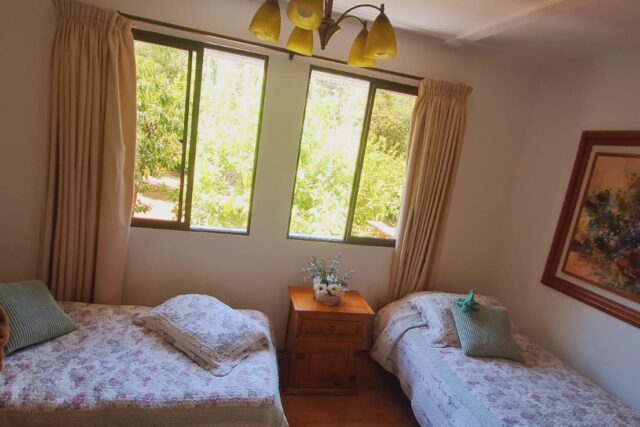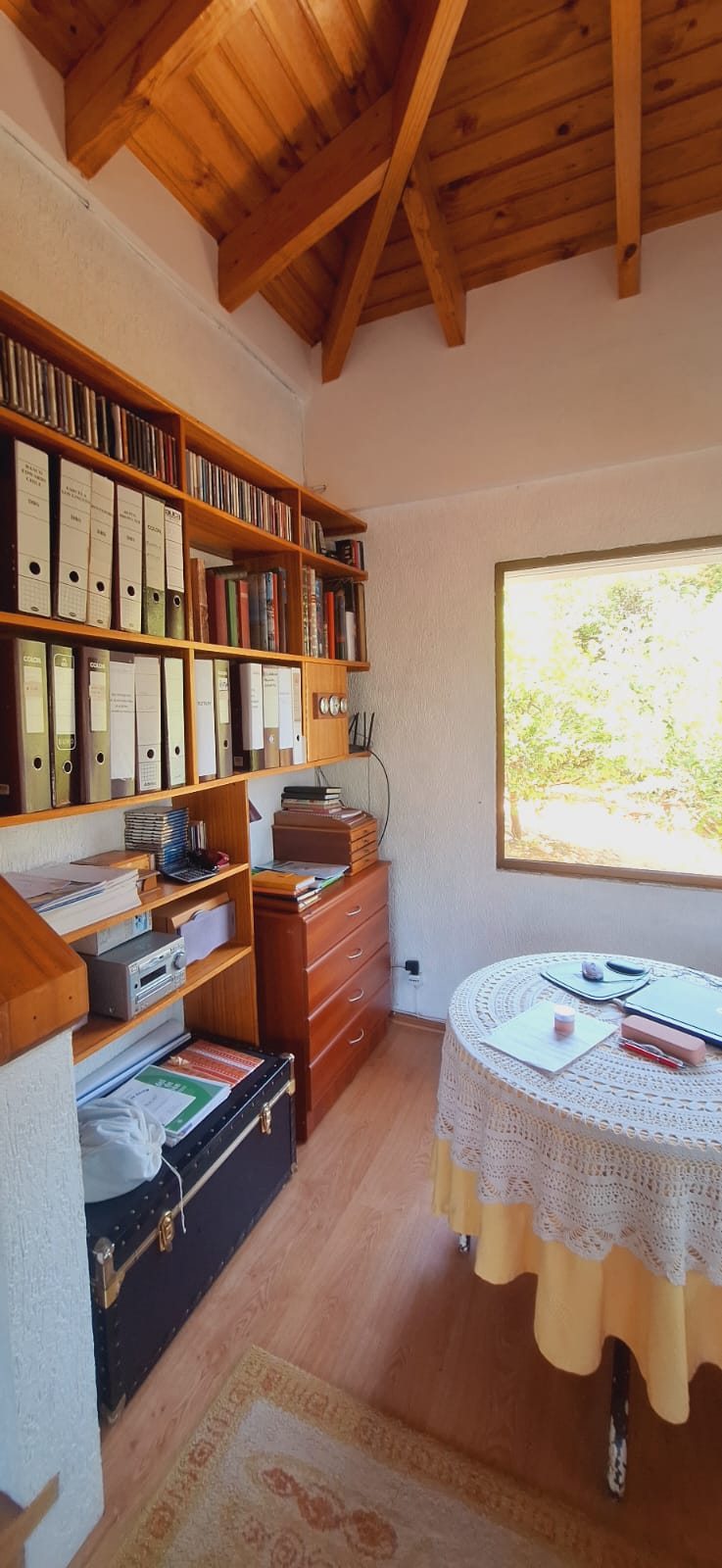 La cocina es amplia, con comedor de diario, y conecta directamente con un patio exterior con parrón y baño, ideal para actividades al aire libre. A continuación, la propiedad ofrece un gran huerto completamente cercado y un quincho, pensados para disfrutar de la vida en parcela.